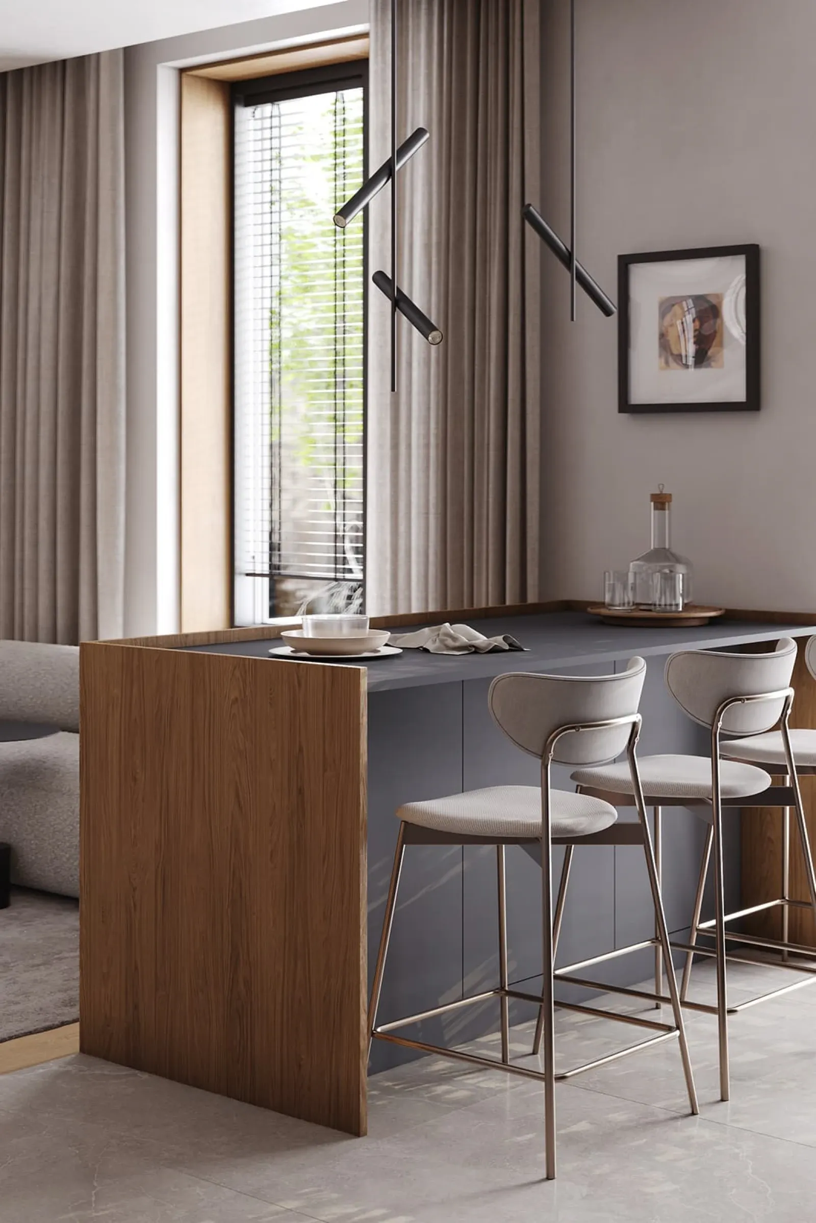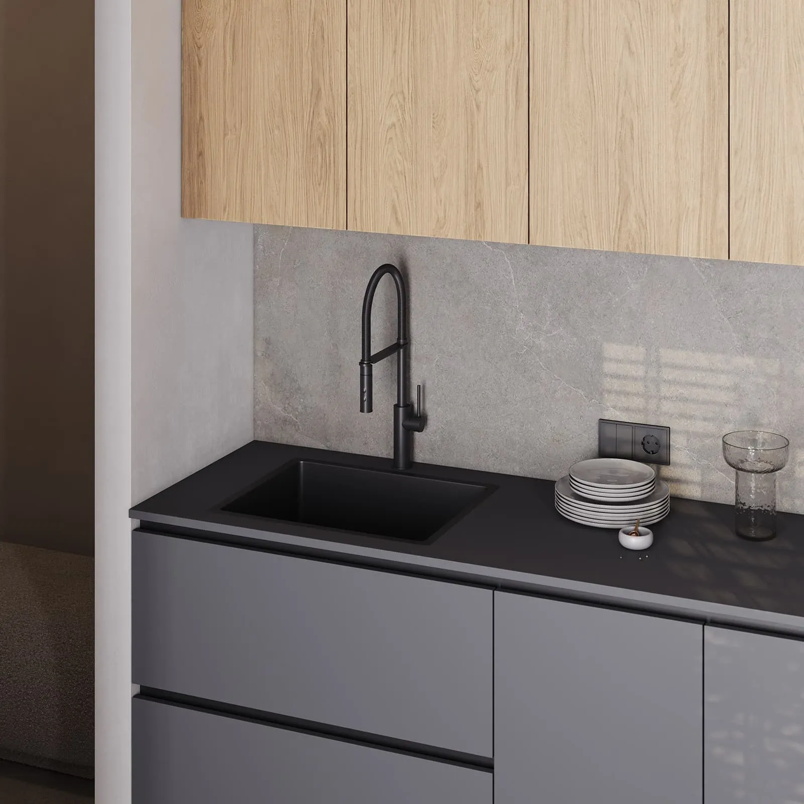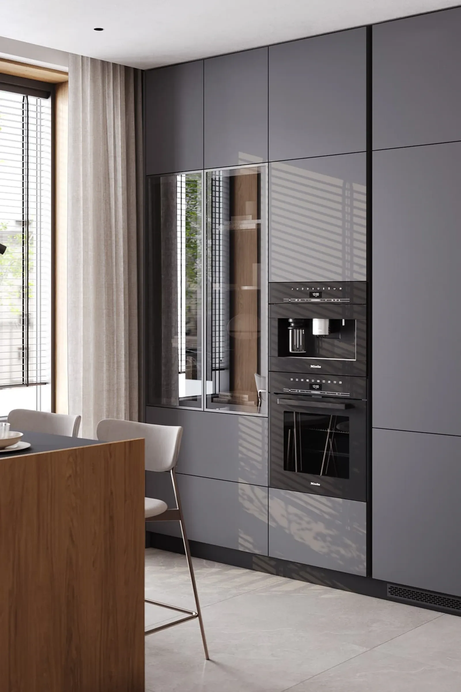 Фасады: ЛМДФ Тимбер, декор Каселла Натуральный / акрил FENIX NTM, цвет Серо-синий NTM (0724)
